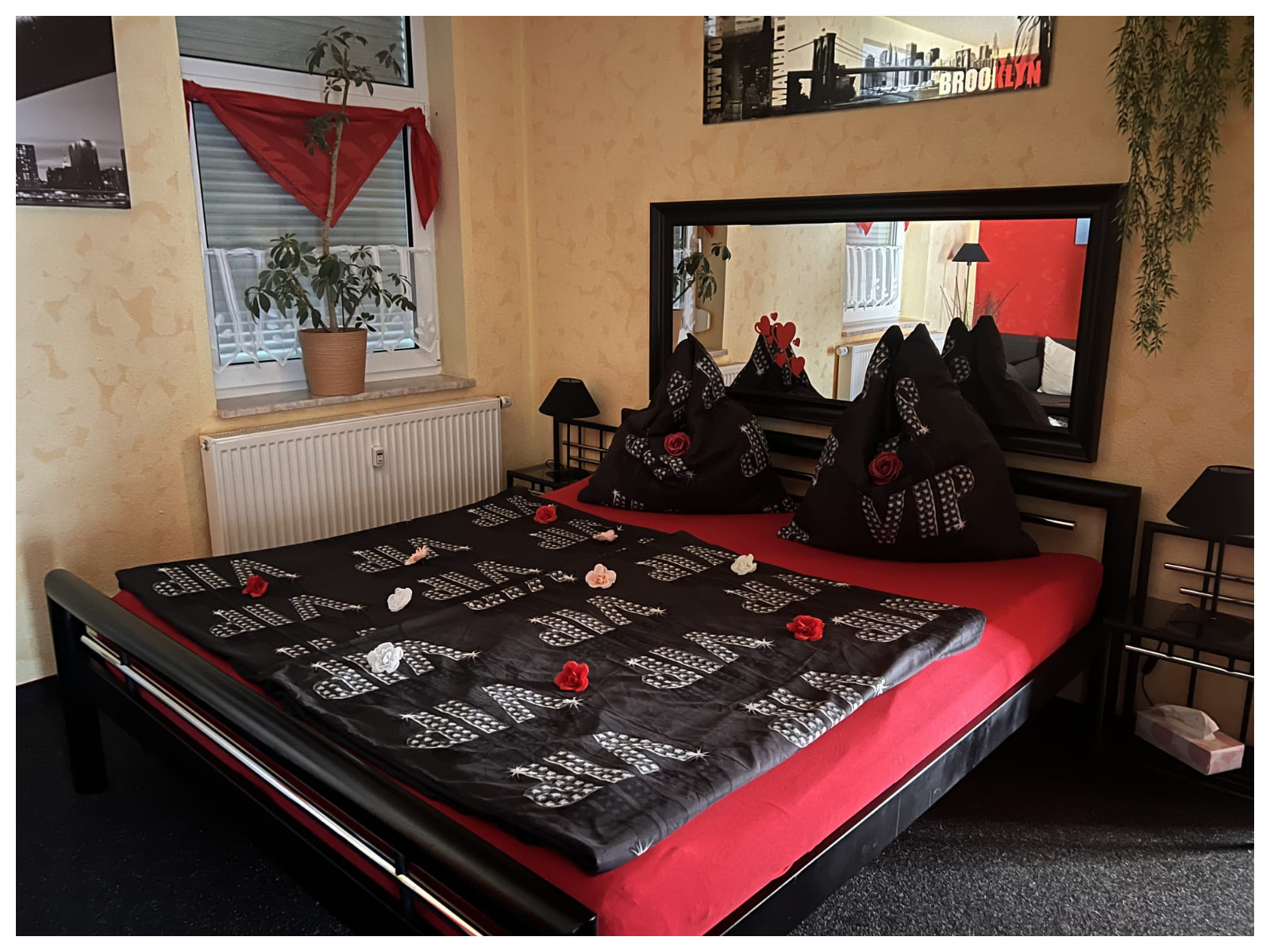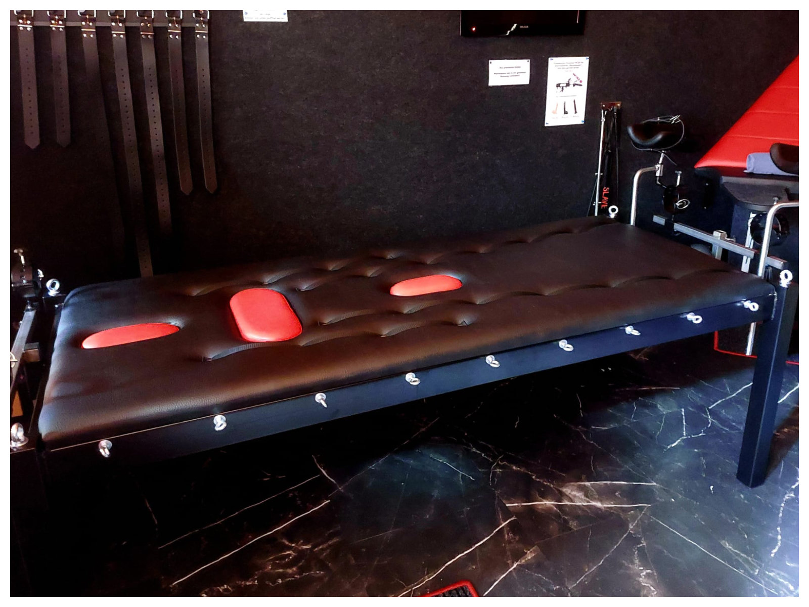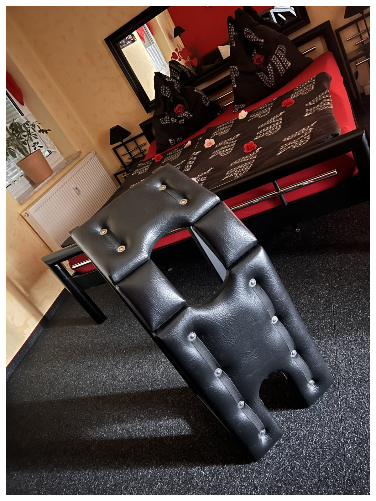 Alle im Spielzimmer eingebauten bzw. zur Verfügung stehenden Gerätschaften, wie die "Lustecke", "Andreaskreuz", "Liebesschaukel", der zusammenklappbare "Multifunktionskäfig" für Bondage mit eingebautem Pranger, sowie die exklusive, stimmungsvolle Deckenbeleuchtung, stammen aus eigener Schmiede und können bei Interesse gerne nach eigenen Wünschen nachgefertigt und erworben werden.